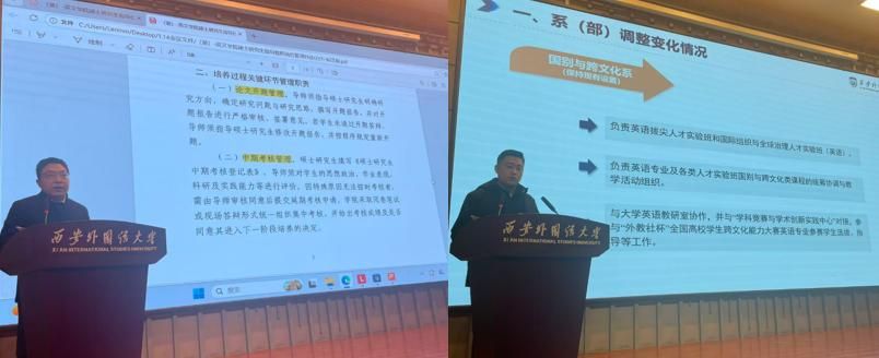 副院长裴等华就研究生导师管理进行了详细解读,副院长宋义国对教研室调整方案作了具体说明。