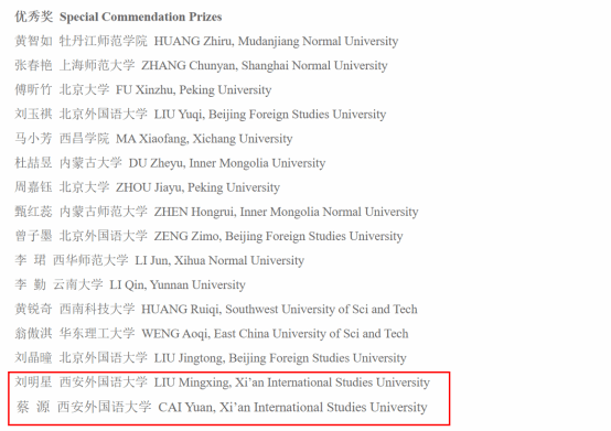 获奖名单见//ausc.bfsu.edu.cn/info/1040/1499.htm。